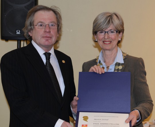 Paul Harris ble tildelt forfatter, regissør, dramatiker og skuespiller Morten Jostad av president Merete F. Sundgaard.