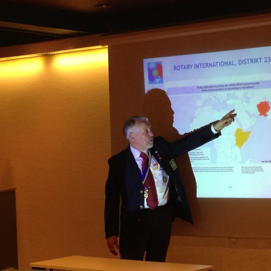 Distriktsguvernør Roy Heine Olsen orienterte bl.a. om arbeidet med "End polio now".