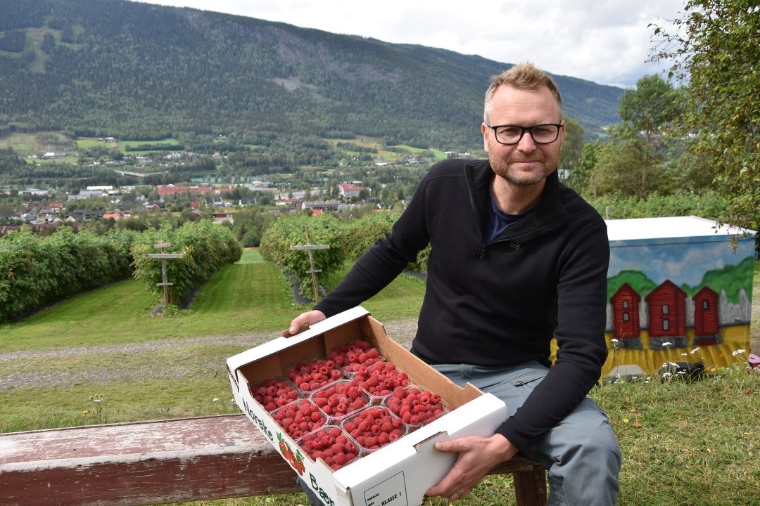 Der det før ble dyrket korn og gras er det nå bringebæra som rår.
