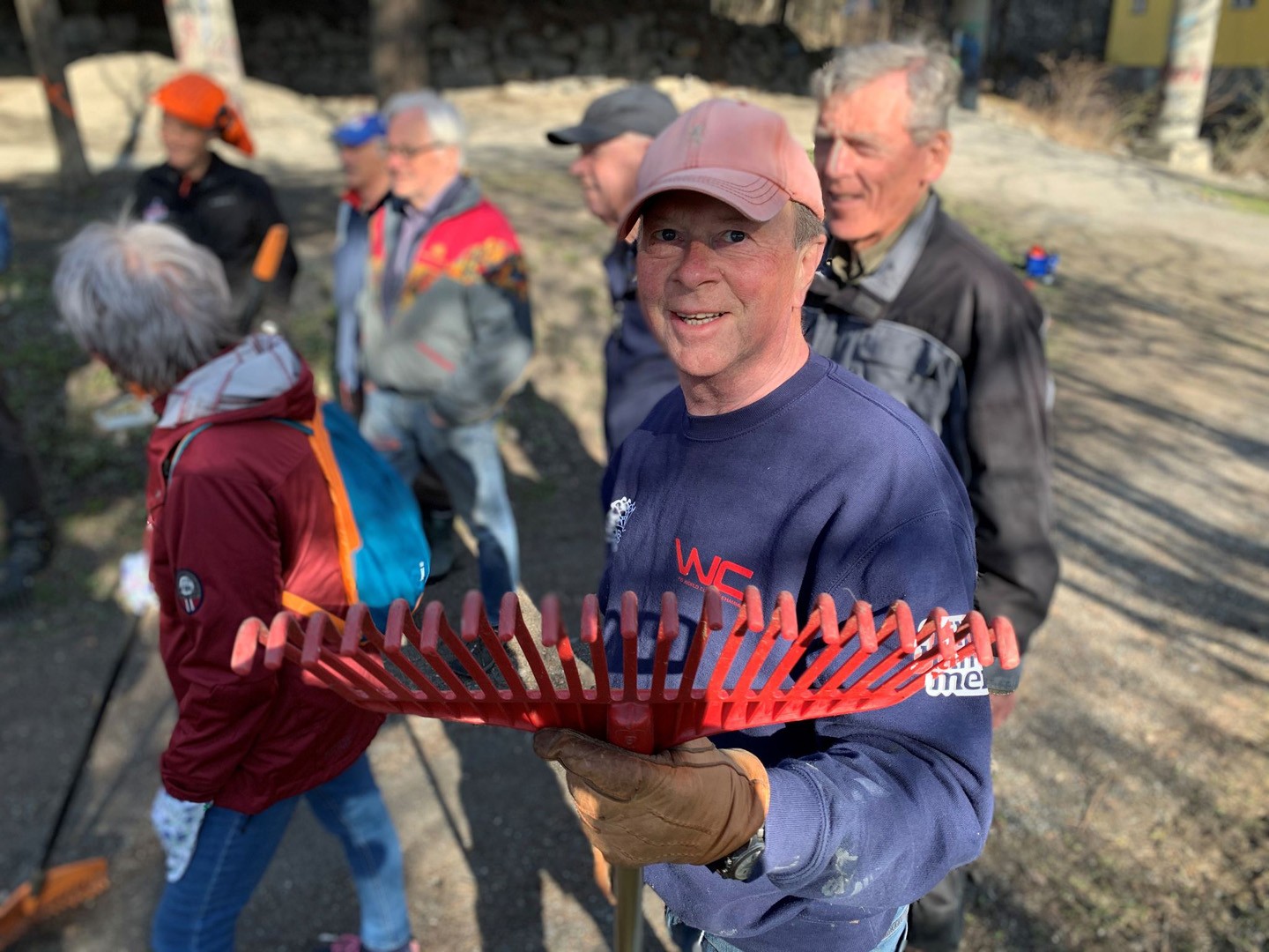 Halvor Møllerløkken med riva under dugnaden.