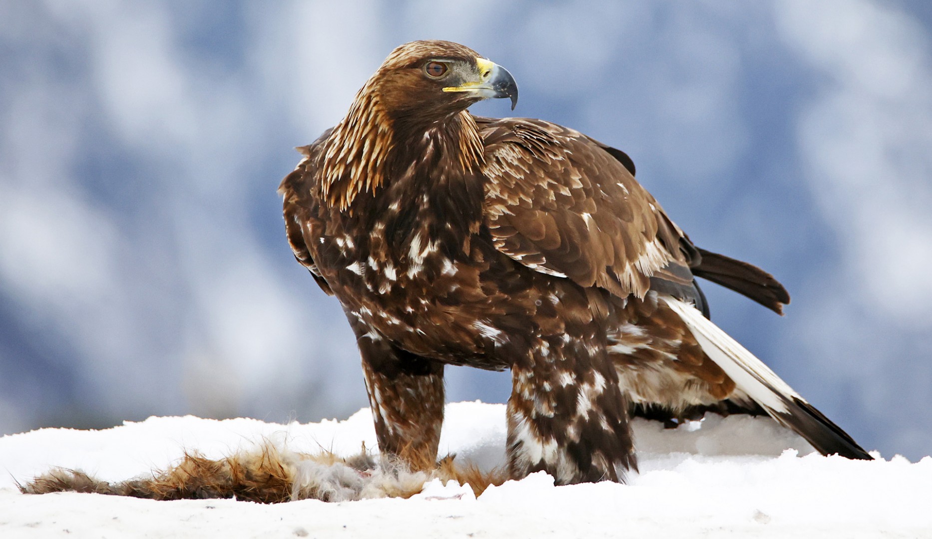 Kongeørna, som han fotograferte fra et fotoskjul hos Fotobonden i Dalen i Telemark i februar 2021 - en majestetisk og flott fugl med et vingespenn på vel to meter.