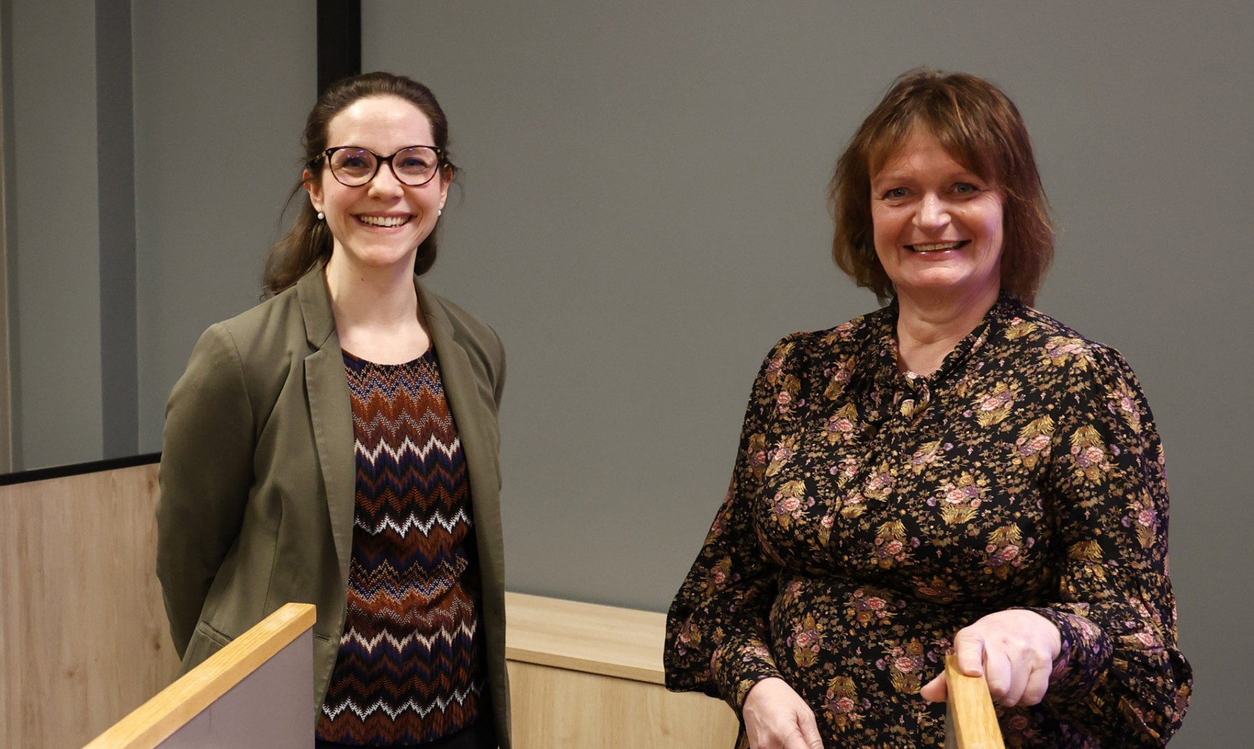 Førsteamanuensis Gunhild Wedum ved Handelshøgskolen Innlandet til høyre på bildet) og prosjektleder i Skåpå AS Hanne Maren Kristiansen ga oss en engasjerte innføring og oppdatering både om begreper og prosjektet «Krafttak for grønn vekst».