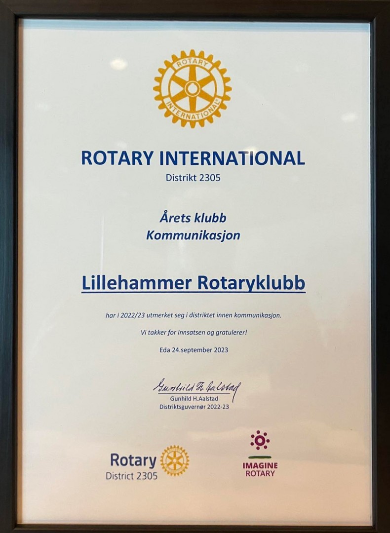 Utmerkelse til Lillehammer Rotary som årets klubb innen kommunikasjon