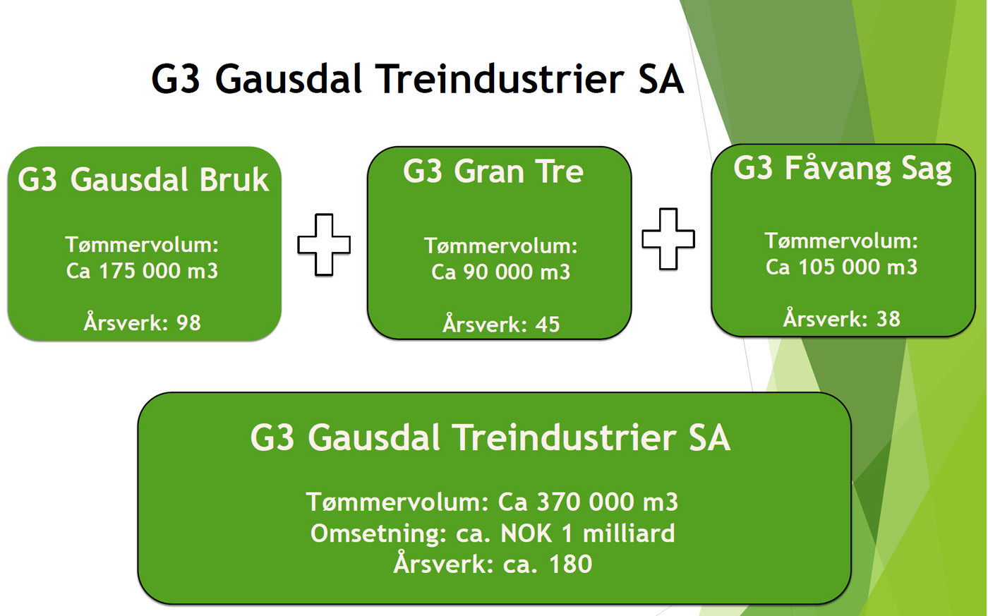 G3 er av ca. 1400 skogeiere, der oppdraget er å skape konkurranse om tømmerstokken i Mjøsregionen». Konsernsjef Jørn Nørstelien ga oss en reise i vekst fra Gausdal Bruvoll til G3 Gausdal Treindustrier.