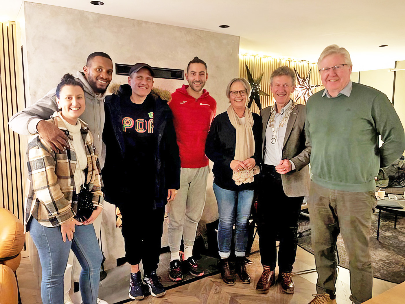 Han hadde med seg sine portugisiske lagkamerater til en liten prat på Scandic Victoria. Fra Lillehammer Rotary møtte president Thor Svegården, Ragnhild Falkenberg og Finn Olsen.