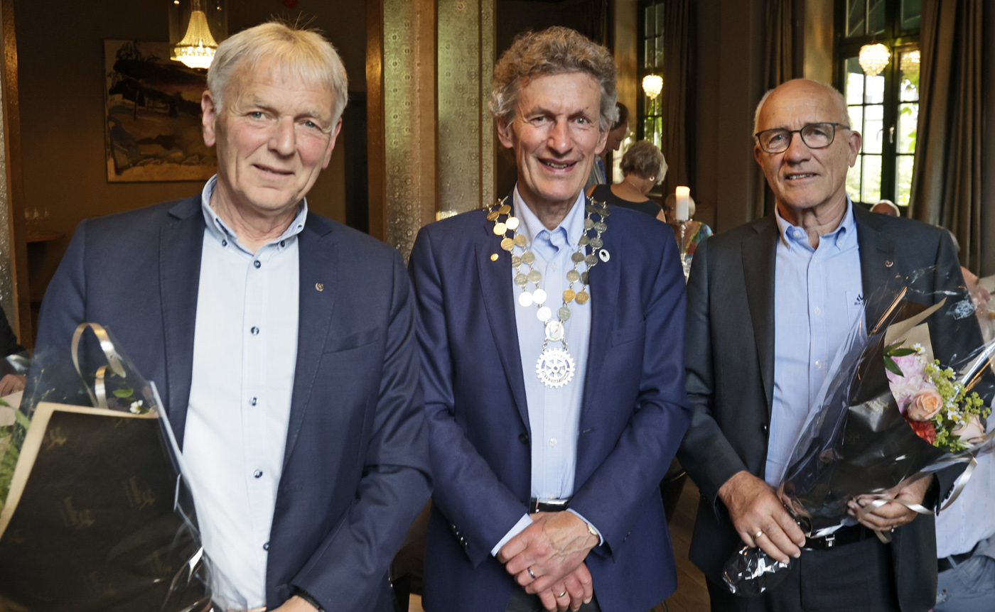 Antall medlemmer i Lillehammer Rotaryklubb ble denne kvelden utvidet med to nye medlemmer, fra venstre Per Arne Vågsether og Olaf Melbø, flankert av Thor Svegården, president for Rotaryåret 2023 -2024. Antall medlemmer i Lillehammer Rotary er nå 56.