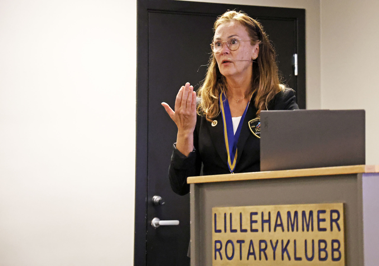 Etter at «settepresident» Arild Evensen foredro om Ringebu Rotaryklubb, ble det tid for en benstrekk og kaffepåfyll før distriktsguvernør Lidun Hareide fikk ordet. Hun virket som en særdeles fremoverlent og aktiv kvinne, mange antydet etterpå at «nå blir det fart i vårt Rotarydistrikt», det får hun ta som et stort kompliment! Hareide kunne fortelle at hun før hun dro til Bergen for å studere, var hun et forholdsvis ungt medlem av rotaryklubben i Ulsteinvik på Mørekysten. – Der utviklet jeg et godt vennskap til min mye eldre fadder, en koselig og aktiv mann. Etter 20 år kom jeg tilbake til kystbyen fra Canada, og det gikk ikke lang tid før min gamle venn klarte å overtale meg til å bli med i klubben igjen, fortalte hun. – Med mine 60 år er fortsatt å anse som ung, smilte hun og innrømte at hun var lett å overtale.