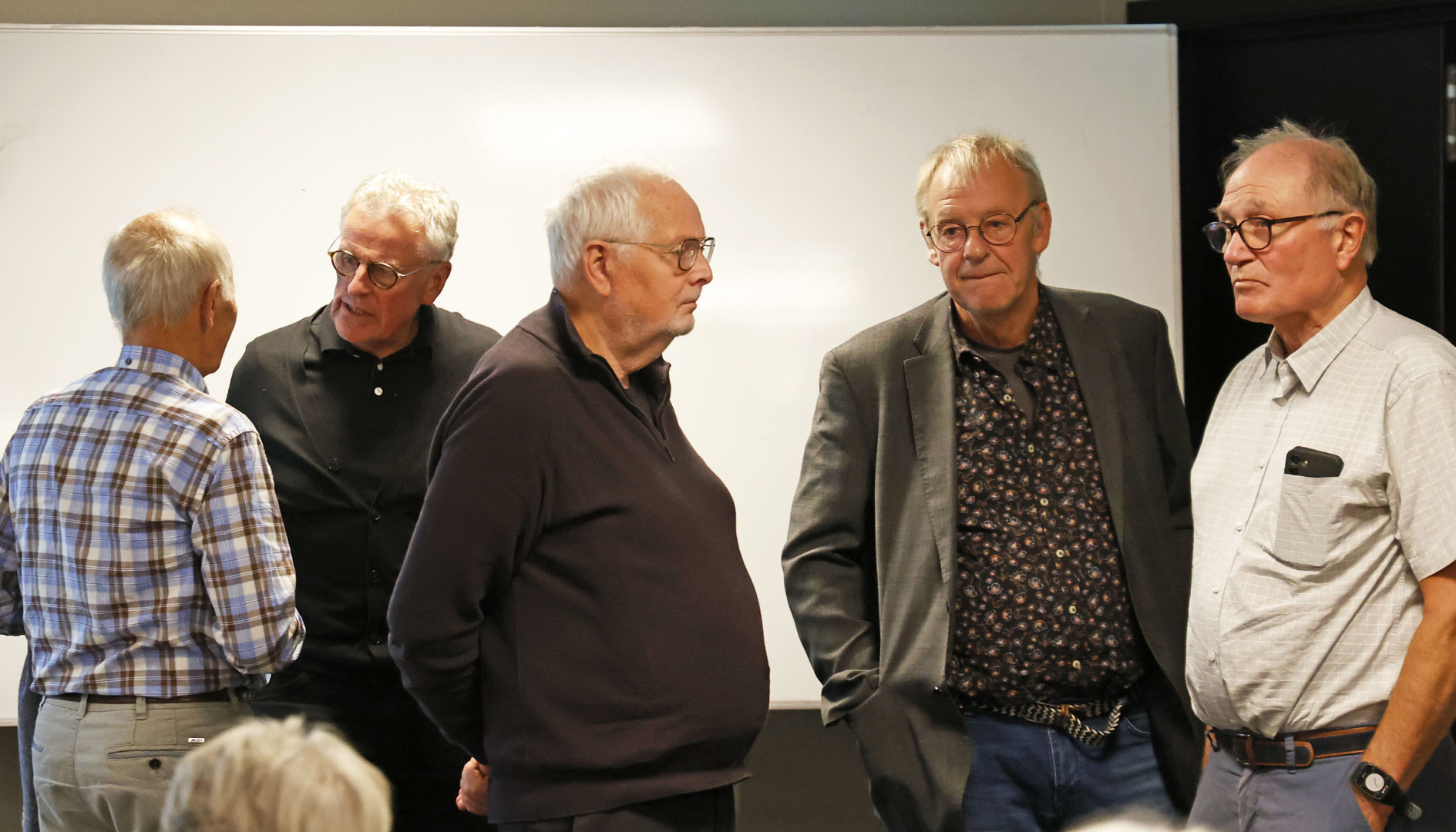 Praten gikk livlig både i forkant av møtet og i pausen, fra venstre Audun Gjengedal, Øystein Windingstad, Steinar Fossbråten, Tore Feiring og Sten Celius.