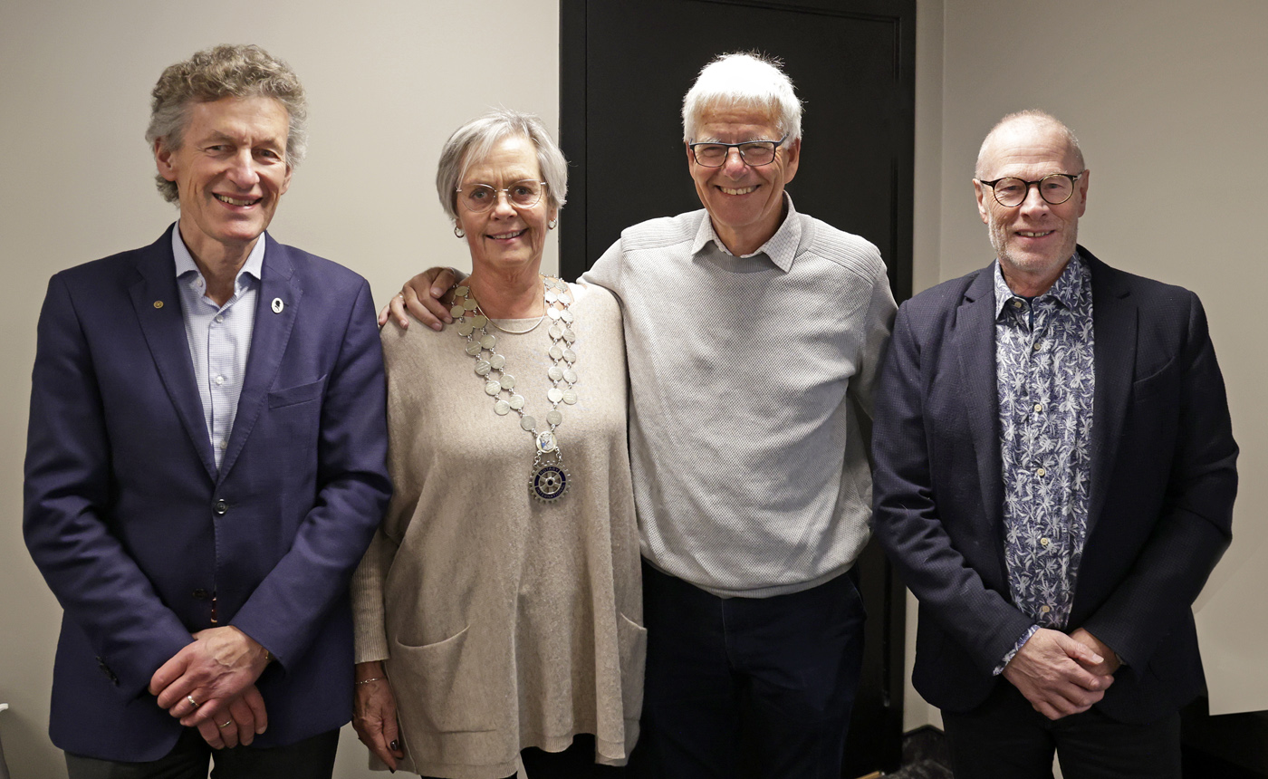 Fire presidenter i Lillehammer Rotaryklubb, fra venstre Thor Svegården i perioden 2023 - 2024, nåværende president Ragnhild Falkenberg, Jan Erik Svendsen valgt president for neste Rotaryår og Lars Hanstad valgt president for Rotaryåret 2026 - 2027.
