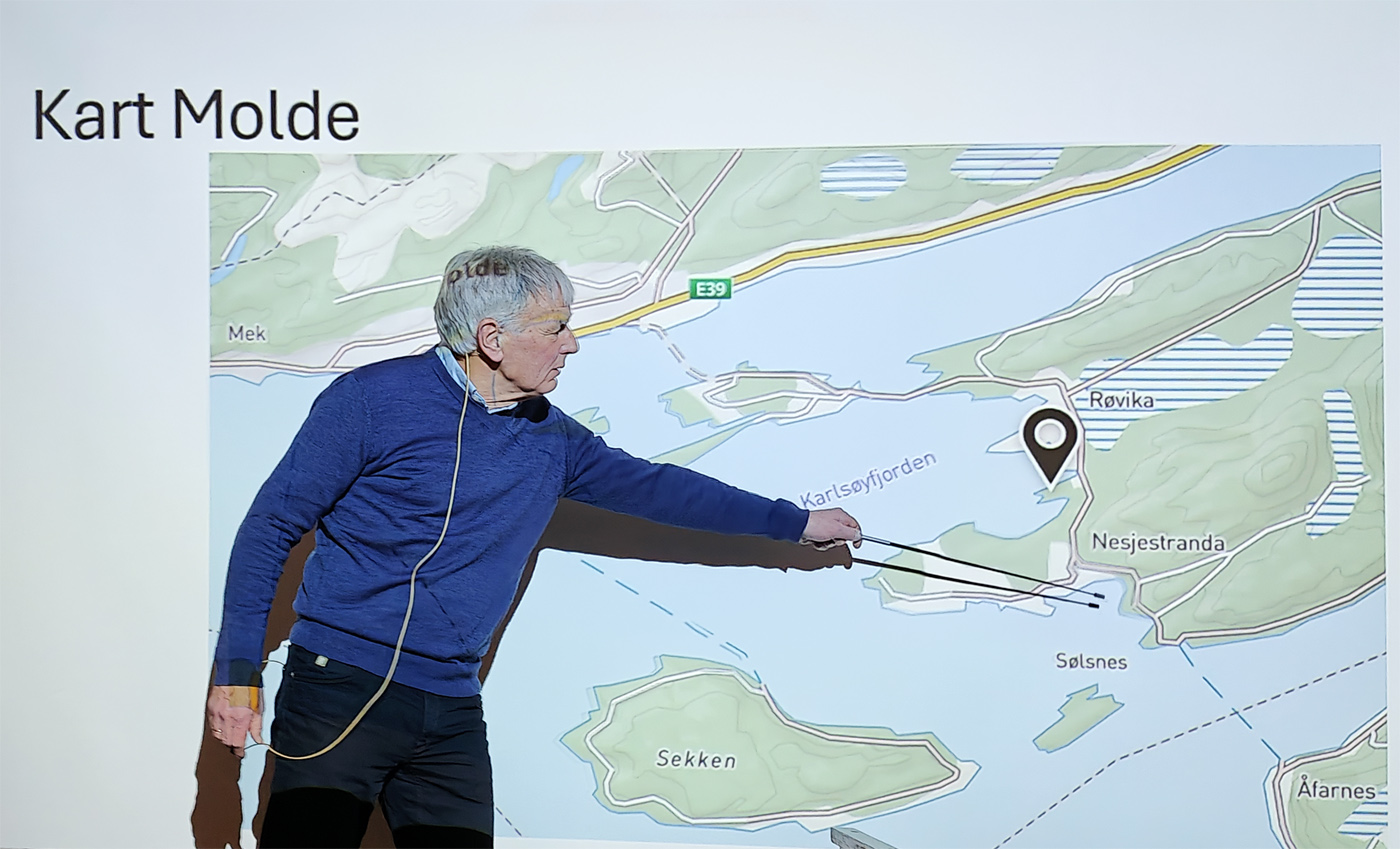 Han fortalte videre litt om historien til og utviklingen av stedet der han vokste opp og bodde til han var 21 år. Den gang var det 5 møbelfabrikker i området, nå er det bare en igjen. På 1950-tallet var det også en konfeksjonsfabrikk (Rydjord). Han viste bilder av barndomshjemmet i Vågsethervågen. Dette brant på et tidspunkt ned, men broren bygget det opp igjen. På hjemplassen har Per Arne og familien et naust/hytte i sjøkanten som blir benyttet flittig.