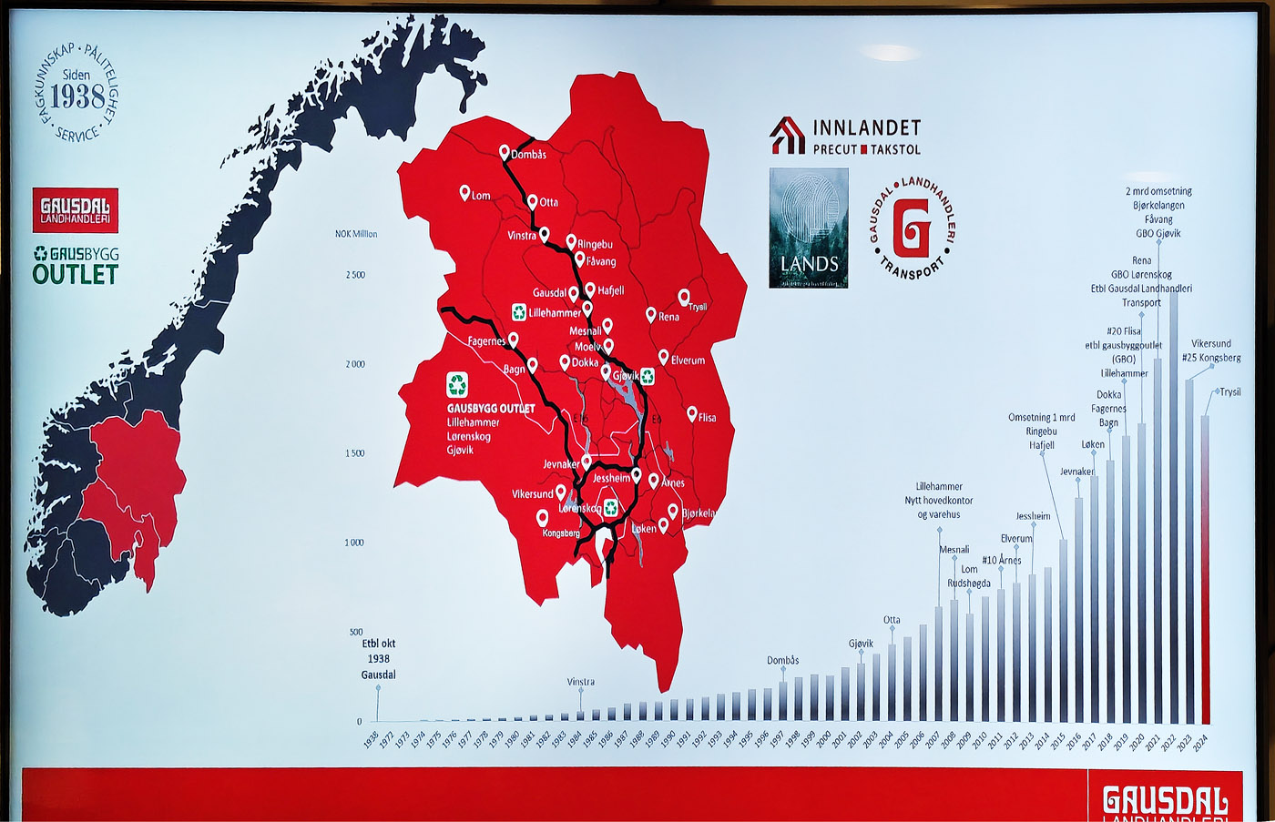 Vår strategi har vært volum og vekst. I dag har Gausdal Land hele 26 varehus over hele Øst-Norge, der de siste som har kommet til er Trysil, Vikersund og Kongsberg. Vi ser hele tiden etter nye lokasjoner som gir en effektiv distribusjon til de største markedene, sa Løhre.