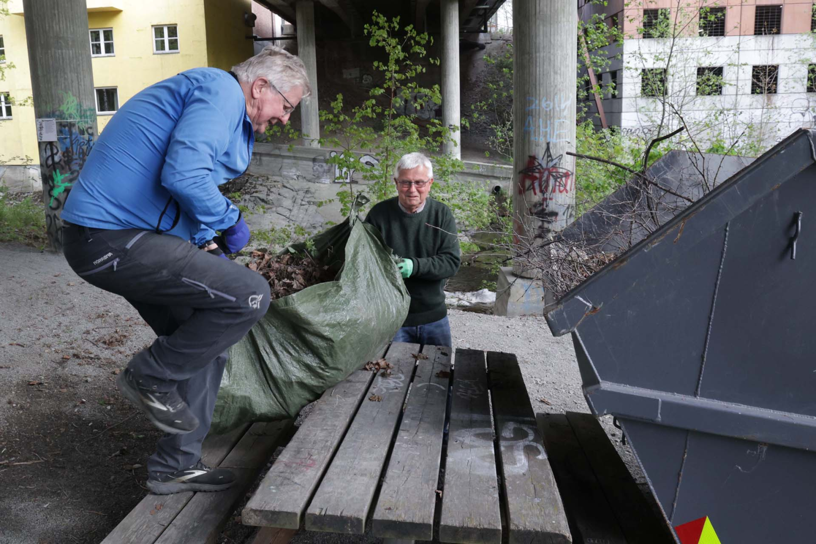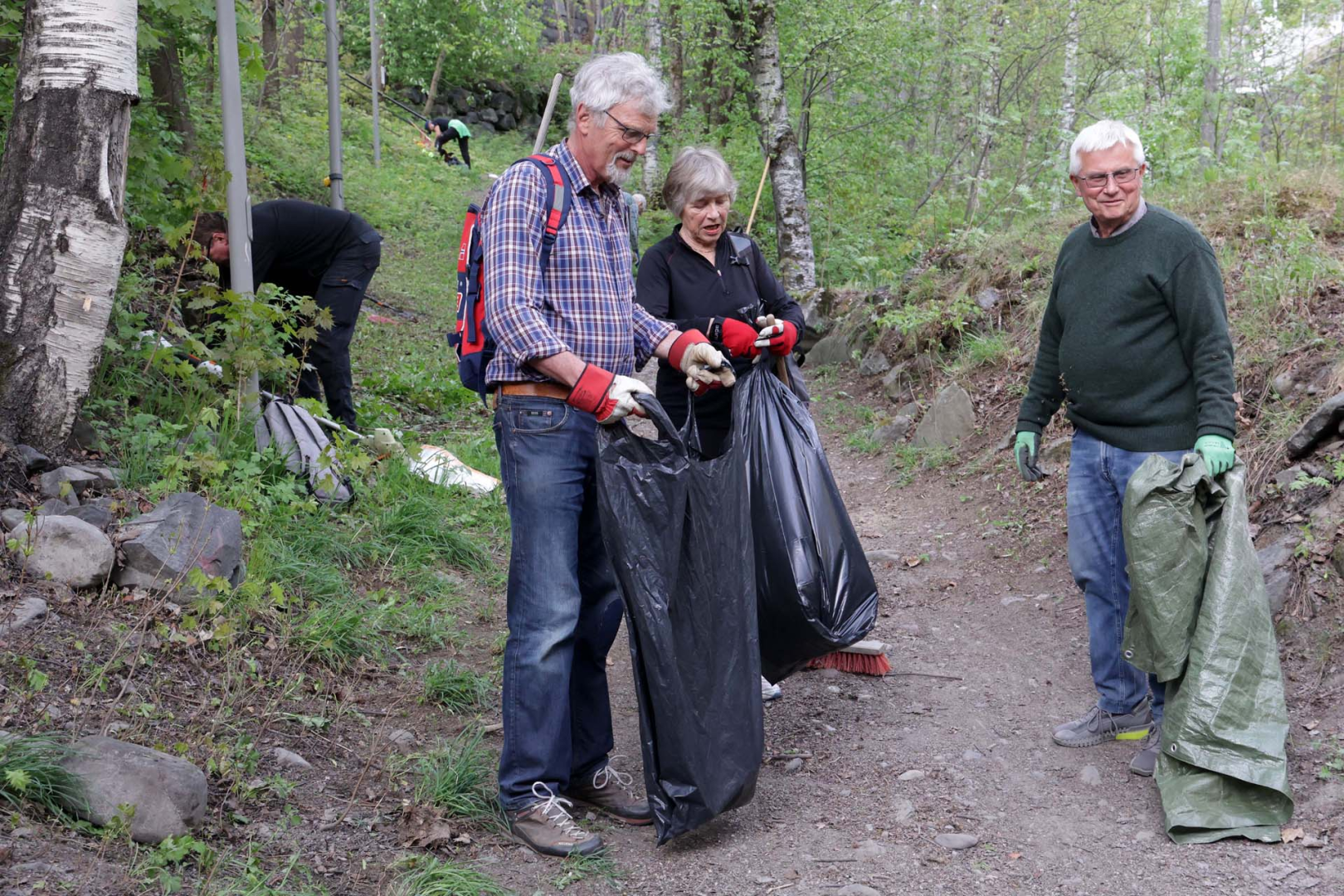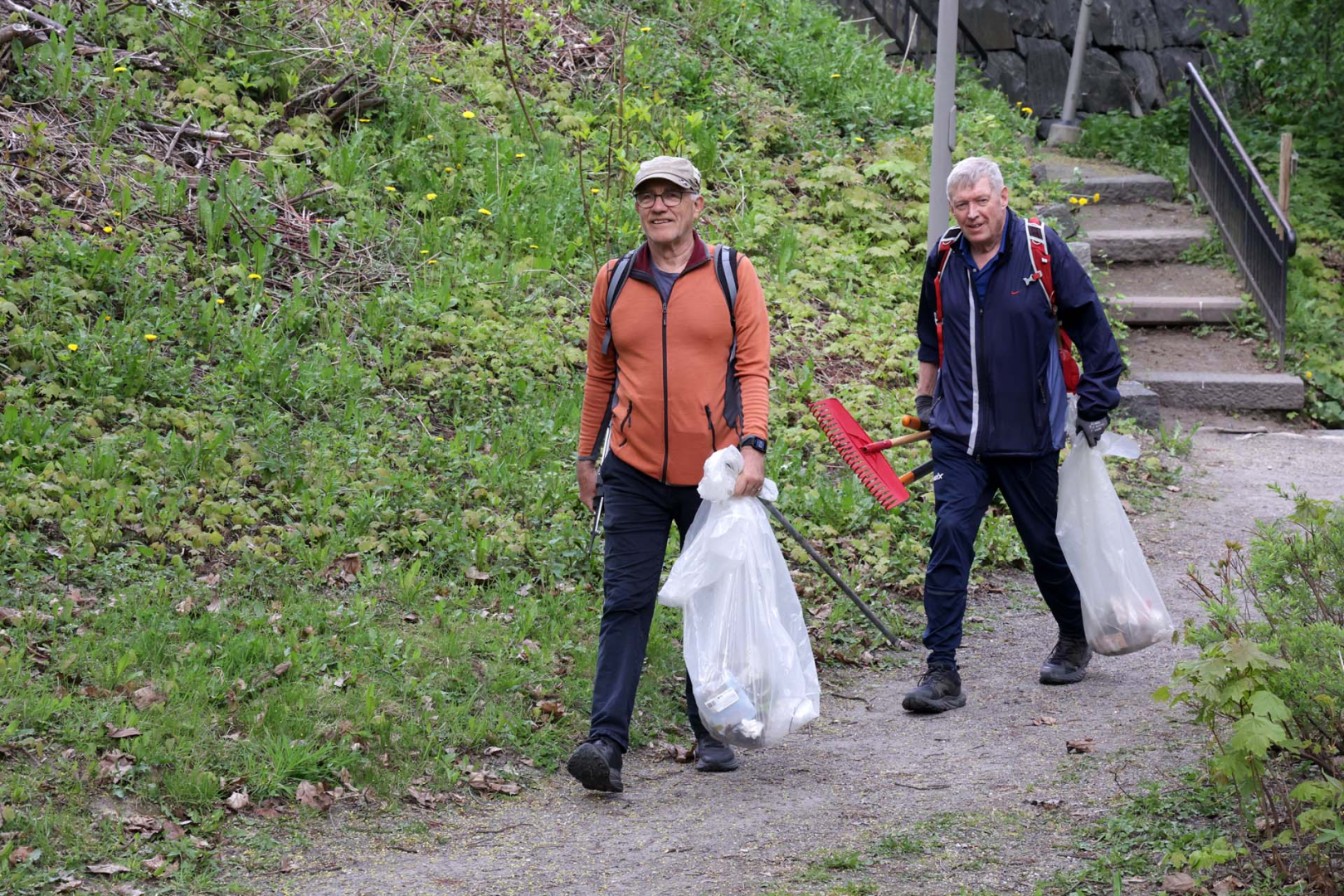 Olaf Melbø og Per Arne Arstad plukket søppel langs kulturstien mellom Finna bru ned til Terassen, det ble ikke overfylte søppelsekker på denne strekningen.