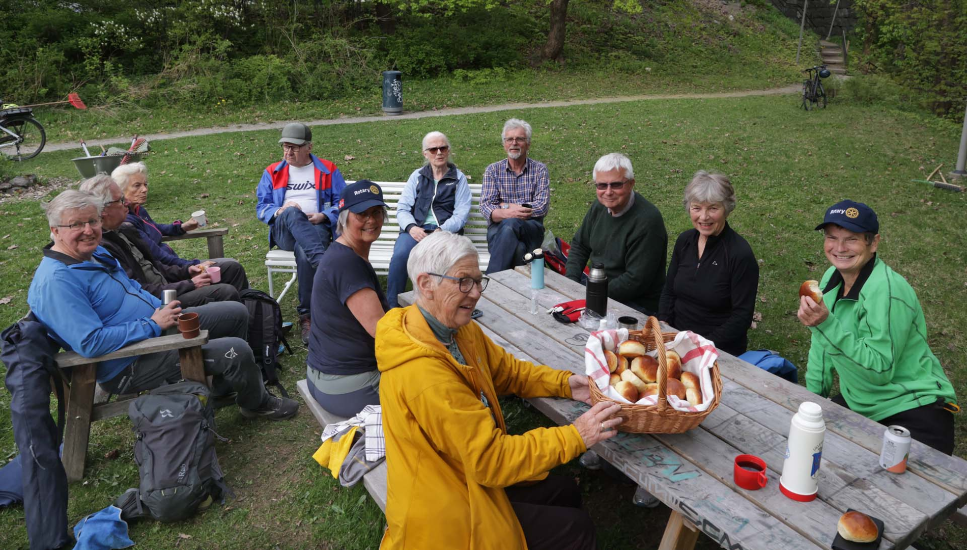 Dugnad er også sosialt. Etter utført arbeid samlet mange i dugnadsgjenen seg til kaffe og nydakte boller som president Ragnhild Falkenberg i Lillehammer Rotaryklubb hadde bakt.