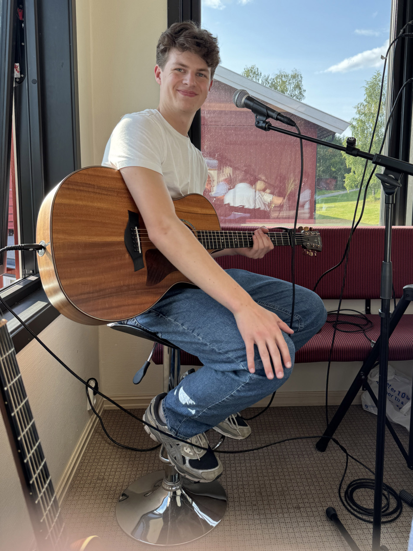 Eleven Jonathan Gjevre, som går siste året ved Create, underholdt med fire egenkomponerte sanger og en av Bernhoft.