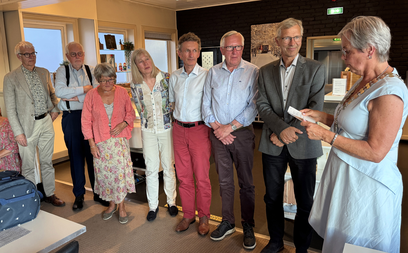 President Ragnhild Falkenberg t.h. takket komitelederne for stor innsats og godt samarbeid, fra venstre Jan Erik Svendsen, Steinar Fossbråten, Aud Hulberg, Marthe Kari Dahl, Thor Svegården, Olav Sørby og Trond Karlsen. Svein Bergum var ikke tilstede og Finn Olsen var fotograf.